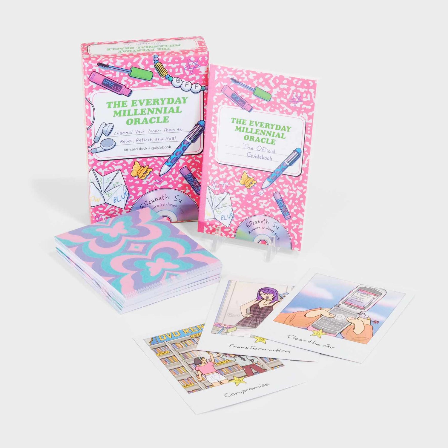 Brought to you in the best-friend voice of Elizabeth Su, author of The Adventure Tarot, this 48-card deck and guidebook is filled with throwback charm and heartfelt advice. Designed to empower and nourish your inner teen, each card is an invitation to feel the feels, vibe the vibes, and re-energize. So dust off those butterfly clips, fire up your mixtapes, and pull your first card; The Everyday Millennial Oracle is about to take you on the most fun, nostalgic romp down memory lane!