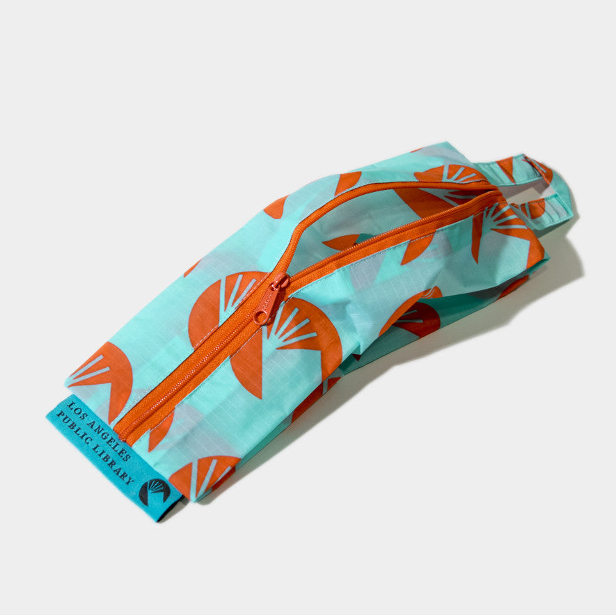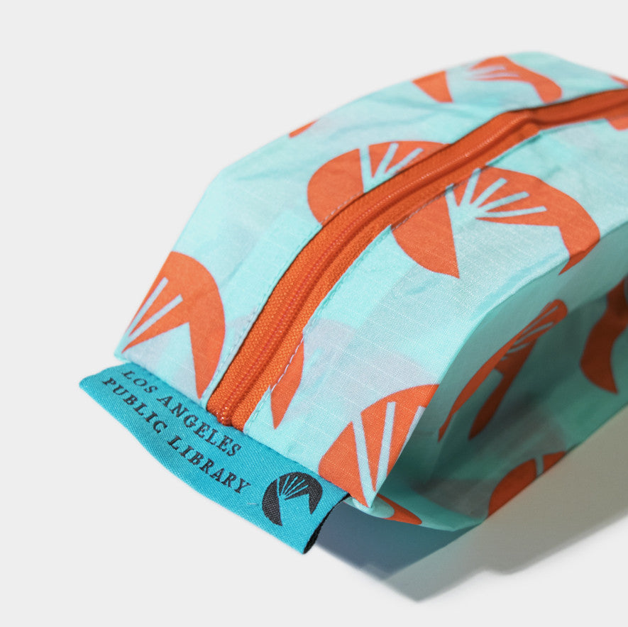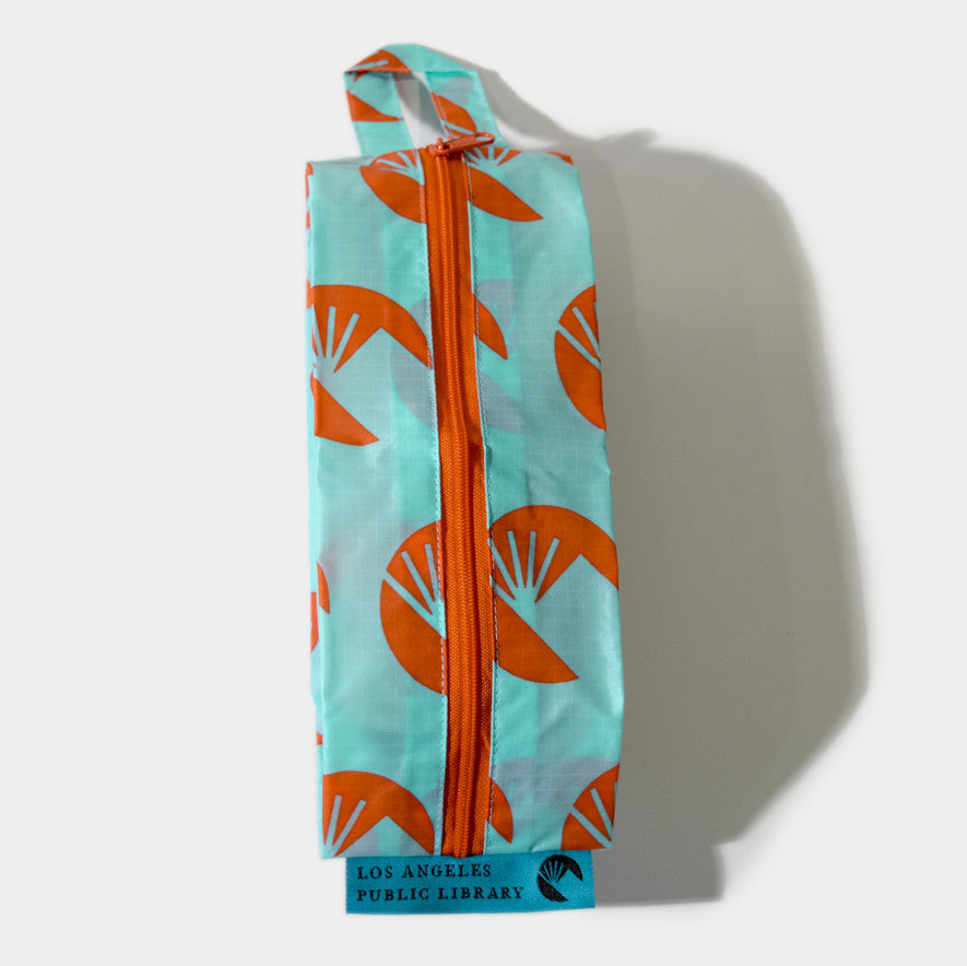 Produced especially for the Los Angeles Public Library by The Library Store and Baggu, this small 3D Zip holds travel-sized toiletries, makeup, school supplies, a gift, glasses, or anything else that needs a small bag! The loop at the top allows for easy carrying or hanging. Made of ripstop nylon and machine washable. It's 7 by 3.5 inches flat but, expands up to 3.5 inches.