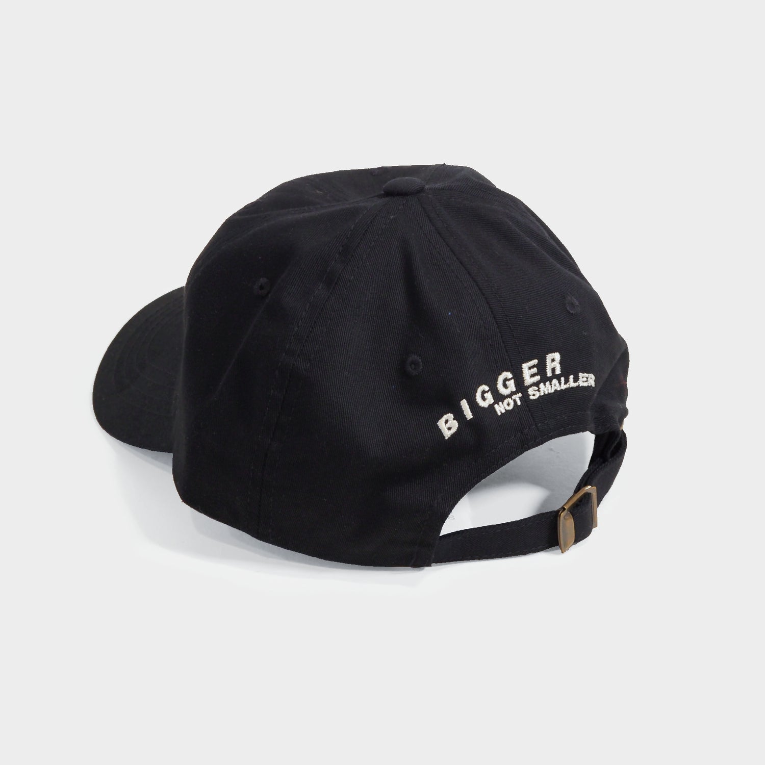 This black, 100% cotton stylish cap is accented with bright white shiny embroidery and it is super comfortable and fully adjustable.